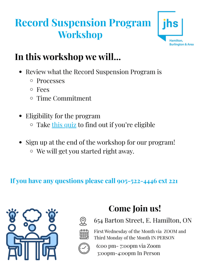 The Record Suspension Program offers individualized guidance to people in Ontario who are seeking a record suspension under the Criminal Records Act. A record suspension allows eligible individuals who have completed all sentencing requirements and maintained a crime-free period to have their criminal record suspended. This can significantly reduce obstacles related to employment, housing, education, and community involvement.